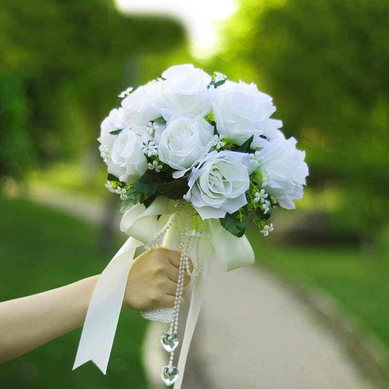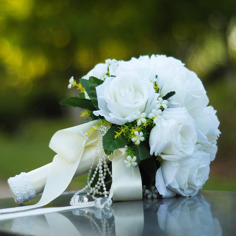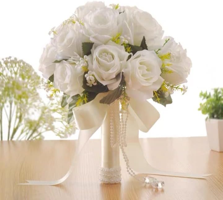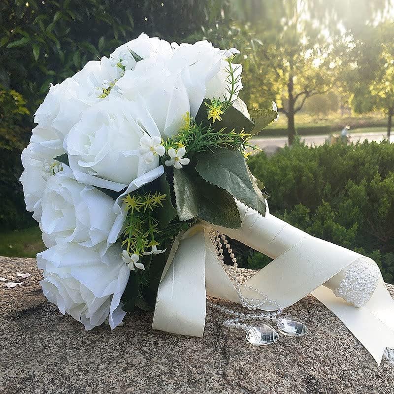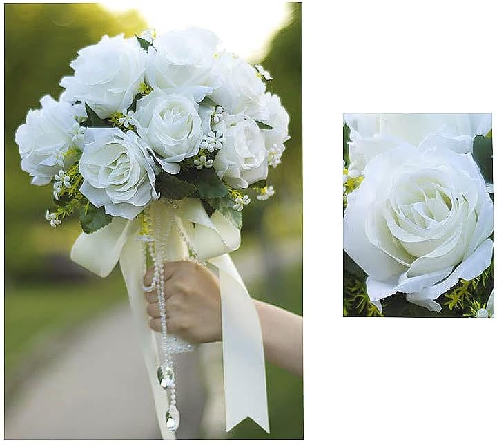 Sponsored Ad - Wowagoga 12 Inch Wedding Bouquet with Pearl Crystals Ribbons,Artificial Rose Flower for Bride Bridesmaids Artificial Fake Flowers Fake Flowers Toss Bouquet for Wedding Party Church(Whit