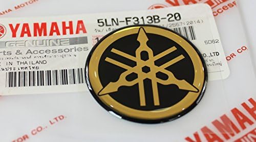 5LN-F313B-20 - Genuine 40MM Diameter Yamaha Tuning Fork Decal Sticker Emblem Logo Black/Gold Raised Domed Gel Resin Self Adhesive Motorcycle/Jet Ski/ATV/Snowmobile