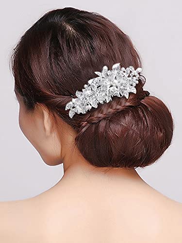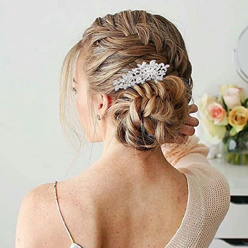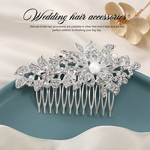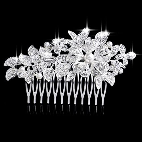 Yean Crystal Bride Wedding Hair Comb Silver Rhinestone Bridal Hair Accessories Pearl Wedding Headpieces for Bride and Women (Style A)