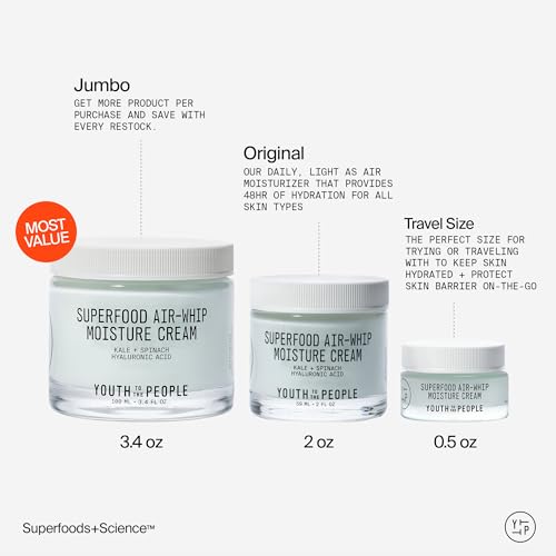 Sponsored Ad - Superfood Air-Whip Moisture Cream - Kale + Green Tea Hyaluronic Acid Face Moisturizer, Smooths + Hydrates Up to 48HR with Dewy Glow, Non-Greasy Lightweight Gel, Non-comedogenic