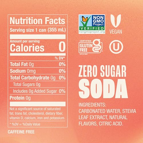 Zevia Zero Sugar Soda, Peaches and Cream, 12 oz Cans (8-Pack) – Caffeine Free, Naturally Sweetened, No Calorie Soda - Non-GMO Project Verified, Gluten-Free, Vegan